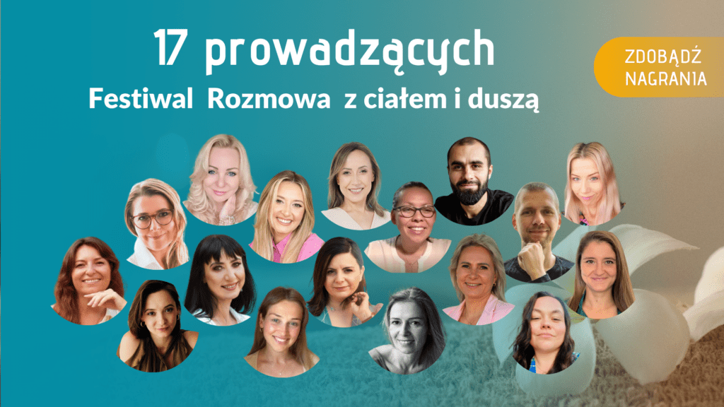 Festiwal Rozmowa z Ciałem i Duszą to wyjątkowe wydarzenie, podczas którego doświadczeni terapeuci i konsultanci dzielą się sprawdzonymi metodami radzenia sobie ze stresem, emocjami i wyzwaniami życiowymi. Dzięki rocznemu dostępowi do nagrań możesz w dowolnym momencie skorzystać z ich wiedzy i praktyk, aby poprawić swój dobrostan i odnaleźć spokój.